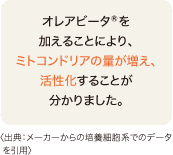 ミトコンドリアを増殖・活性化する生体スイッチ(受容体)「TGR5」は細胞表面に存在します。この「TGR5」を剌激してスイッチをONにすることができるのが、「オレアビータ®」。