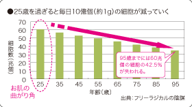 人間のカラダはおよそ60兆個の細胞で構成されています。しかし25歳をピークに毎日およそ10億個の細胞が減少するといわれています。その細胞が減少する原因のひとつは「酸化」、さらに「糖化」が細胞の機能を低下させるといわれています。